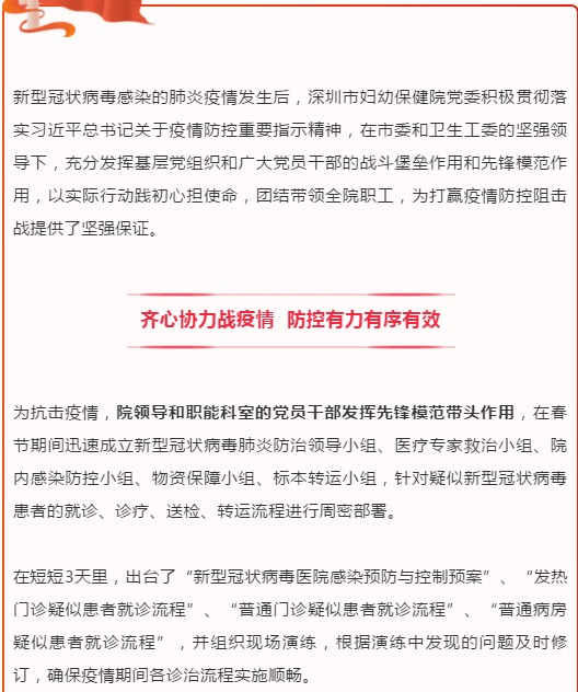 “婦女、兒童抵抗力比較弱,所以母嬰疫情防控工作更加顯得尤為重要。我們是全市婦幼的’龍頭’單位,不僅要做好全院的疫情防控工作,還承擔(dān)著向全市提供為母嬰健康保駕護航的指引工作,作為醫(yī)務(wù)人員我們更是責(zé)無旁貸要做好本職工作?!百嚤叹旮嬖V記者,深圳市婦幼保健院是全市49家發(fā)熱門診之一,作為全市唯一一家婦幼三甲專科醫(yī)院,該院承擔(dān)著更多在特殊時期為母嬰健康與安全保駕護航的作用。