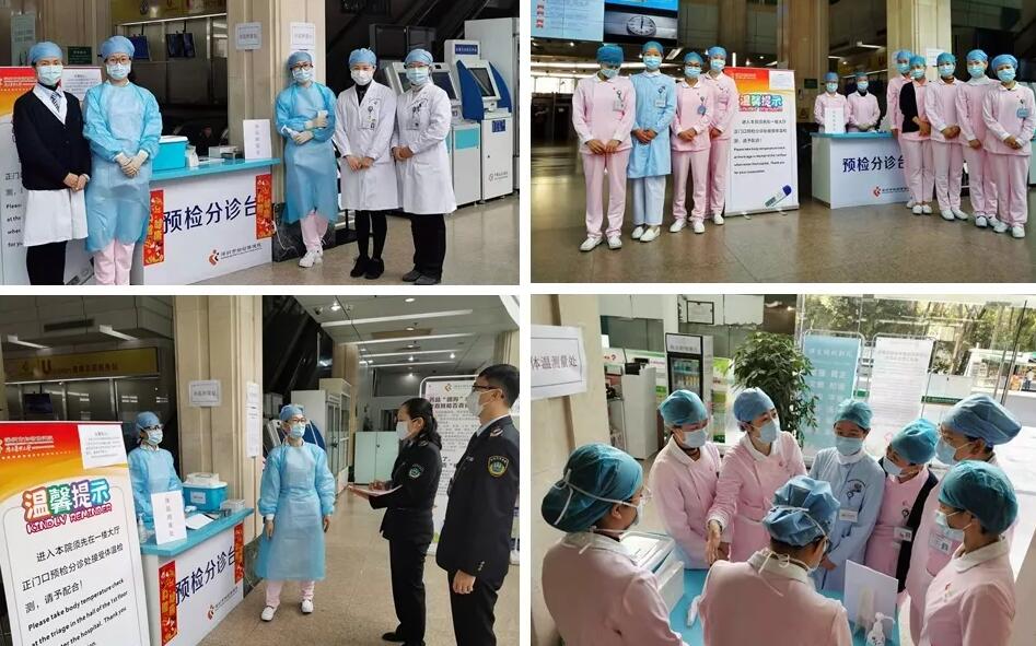 疫情期間,院方將急診預(yù)檢分診前置到醫(yī)院門口,筑起“第一道防線”。通過對患者的體溫、接觸史等流行病學(xué)調(diào)查后,如發(fā)現(xiàn)高度疑似患者,將會指引其到發(fā)熱門診,進行進一步檢查。為了做好防護,發(fā)熱門診另辟在醫(yī)院的東側(cè)。
