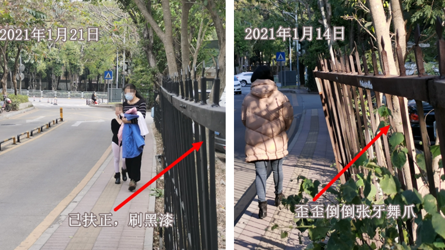 此前因找不到代建單位而無法移交主管部門管養(yǎng)的竹香一路,僅僅過了一周的時間,歪歪倒倒的圍欄扶正了,人行道也即將拓寬。